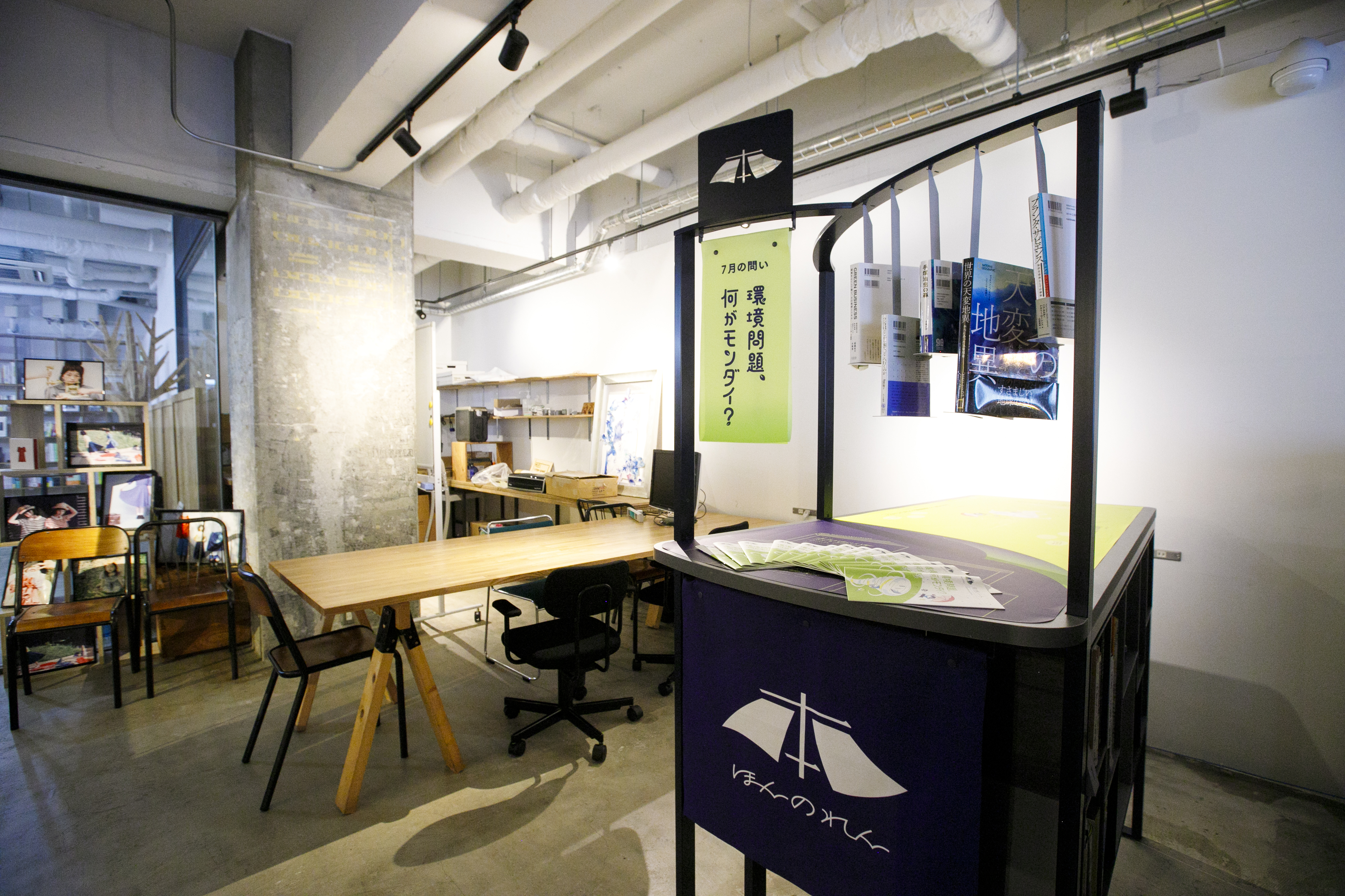 「イノベーション・ハブ・ひろしま Camps」に設置されたほんのれん。広島県が運営するコミュニティ施設であり、誰でも自由に利用できる。