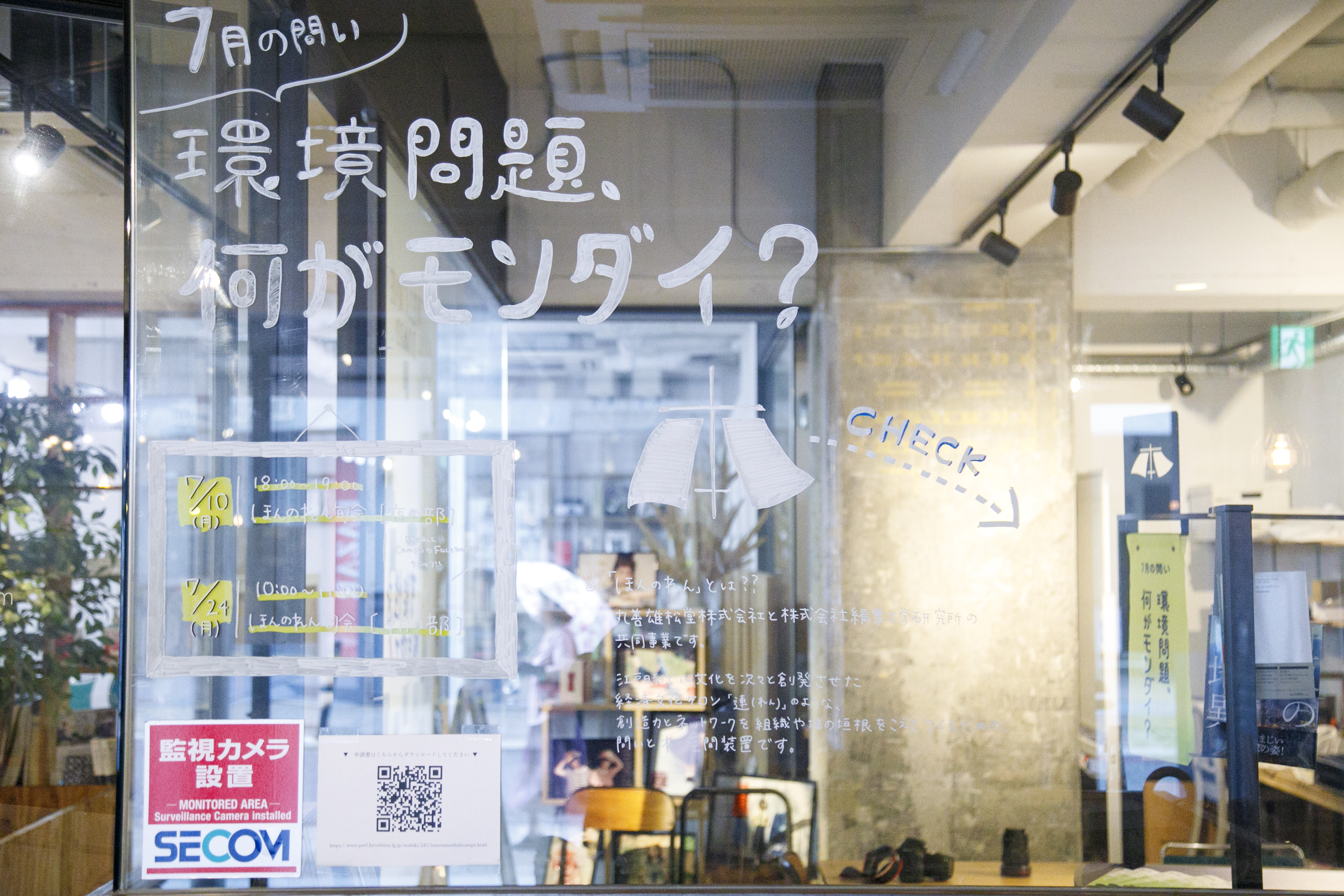 Campsの入り口をくぐると、今月の「ほんのれん」の問いと共読会の実施スケジュールが目に入る。