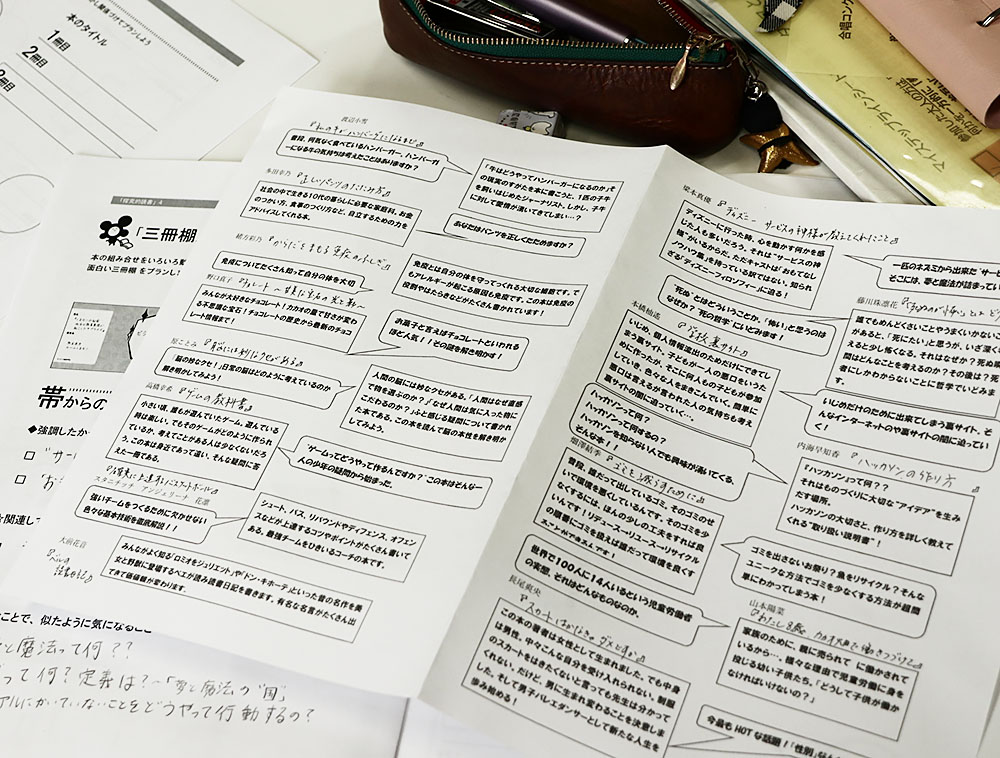 最初のステップで訓練した「限られた情報での仮説設定や抽象化作業」を応用することで、異なる3冊の本に共通する要素を抜き出したり、あるいは逆にテーマに関連する3冊を任意に選び出すことが可能となる。