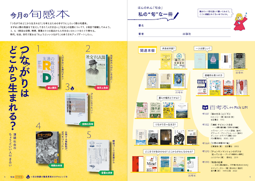 「問い」(テーマ)ごとに厳選した5冊の「旬感本」と、「ほんのれん」定番の100冊である「百考本」から関連書籍を提示します。「ほんのれん」は本というスローメディアに出会い直す機会でもあり、情報過多時代だからこそ、本と出会い、上手に付き合うことが思考の土台となります。