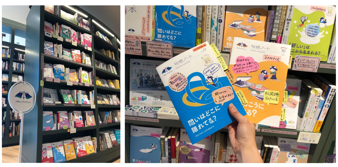 「問い」と「本」のエッセンスが詰まったワークショップ用の「旬感ノート」。A5版の手頃な冊子には、「旬感本」と「百考本」の内容紹介はもちろん、書き込み式の「問いのれん」ページもあり、本が手元になくても「旬感ノート」だけでワークショップを行えます。